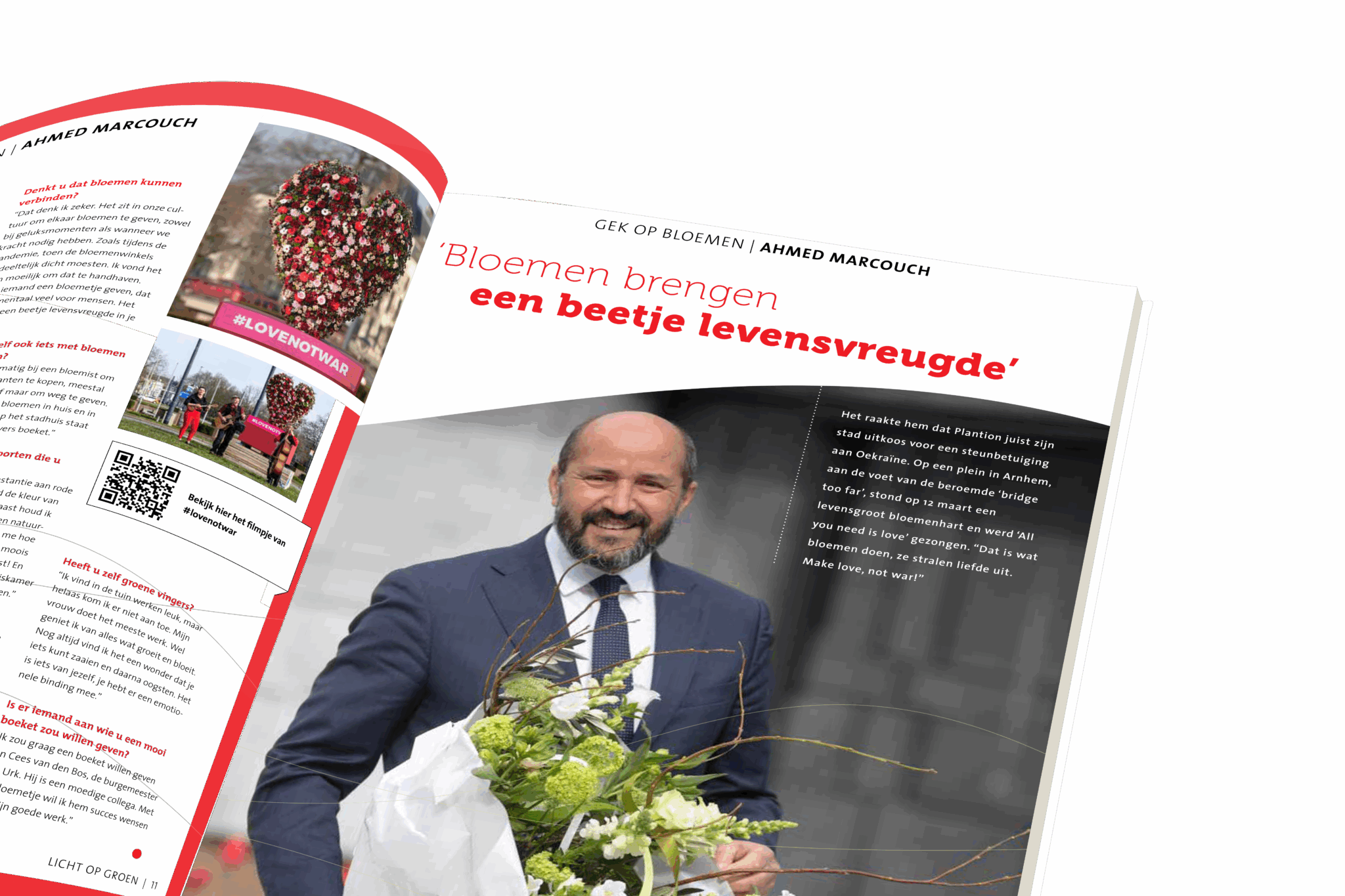 Het initiatief ontroerde niet alleen Ahmed Marcouch, hij kreeg ook enorm veel positieve reacties van mensen in de stad. “Bloemen in de vorm van een hart, het symbool van de liefde. Zo’n groots gebaar doet iets met je. Het maakt je even blij.” De burgemeester van Arnhem begrijpt wel waarom Plantion bij de Gelderse hoofdstad uitkwam: de Slag om Arnhem staat er in het collectieve geheugen gegrift. “Onze stad is zich bewust van haar oorlogsgeschiedenis met een gedwongen evacuatie. Na mijn aanstelling als burgemeester kreeg ik allereerst een rondleiding langs alle oorlogsmonumenten.” Bij die monumenten vinden jaarlijks herdenkingen plaats, om de herinnering levend te houden en naar de toekomst te kijken. “Onlangs sprak ik een Engelse veteraan. Hij zei: ‘Het is fijn dat jullie ons blijven eren, maar belangrijker is te voorkomen dat je nog een keer jonge mannen en vrouwen naar het front moet sturen’. Hij had gelijk, we moeten blijven investeren in vrede en veiligheid.”