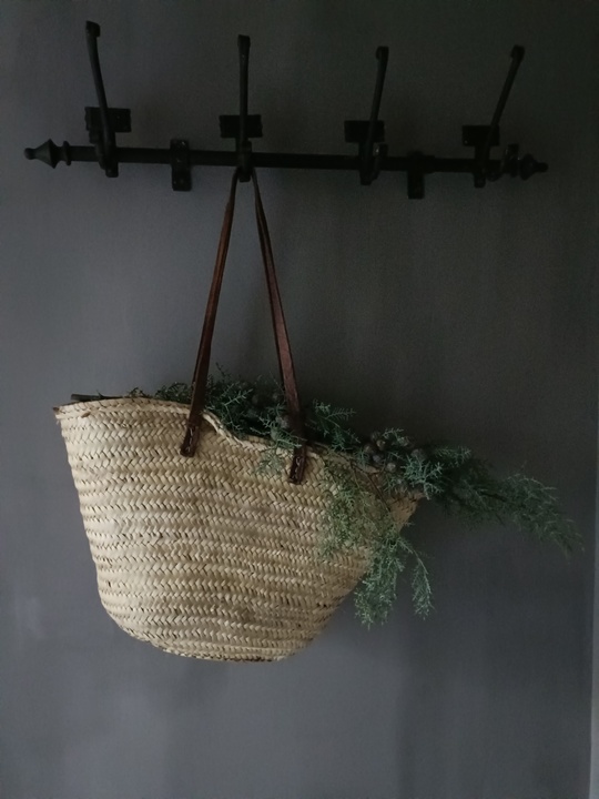 Bij binnenkomst in de hal, heb ik een mand gevuld met mooie kersttakken, zowel op de trap, en of hangend aan de kapstok is dit een mooie eye-catcher voor een warm welkom!