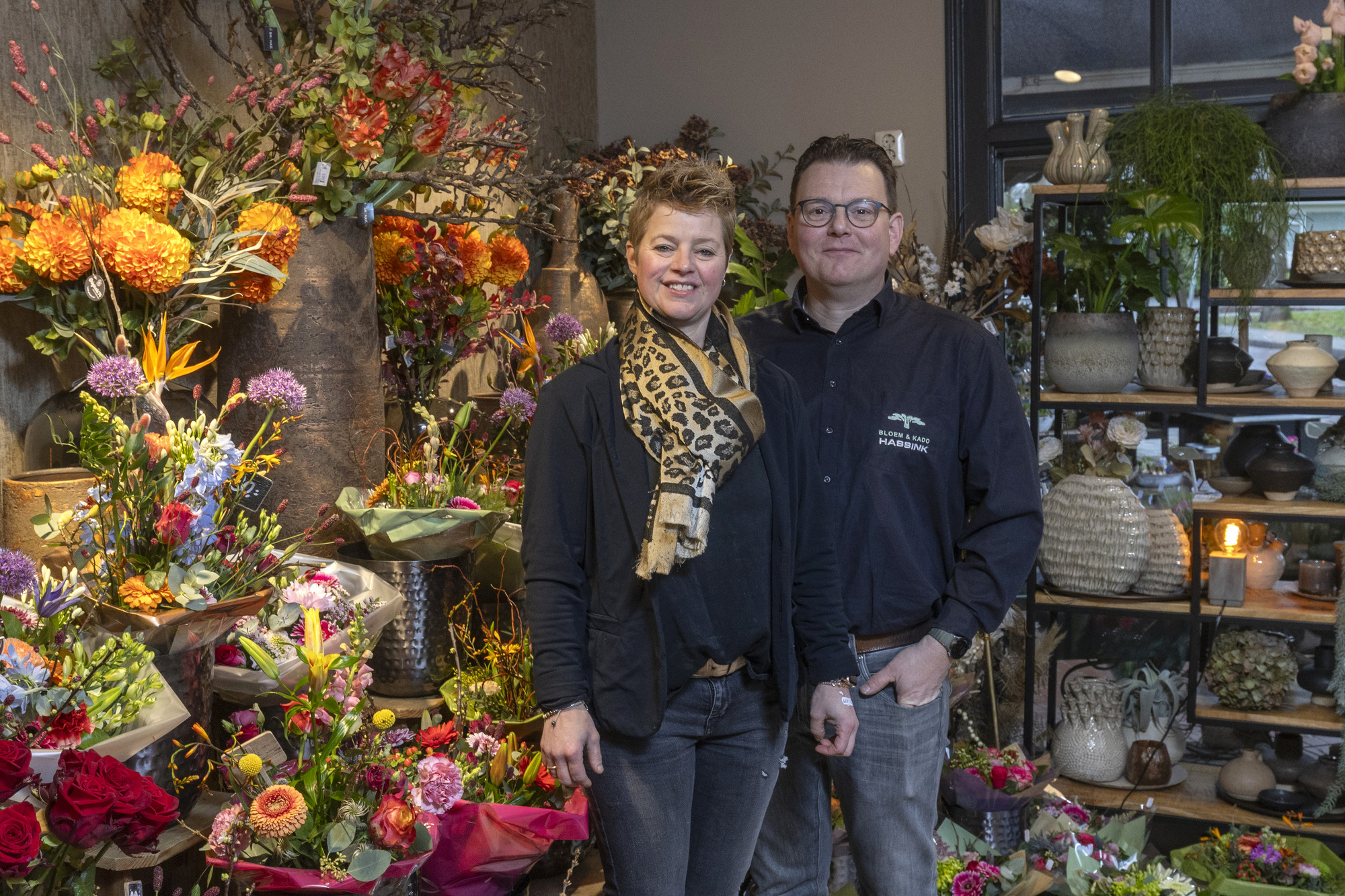 Die taakverdeling werkt goed. Hun winkel biedt een royale keus aan snijbloemen, kamerplanten, vazen en andere decoratie. Buiten staan rondom tuinplanten. Wendy: “Ons motto is ‘veel keuze, voor elke portemonnee’. We zijn er voor mensen die speciaal vanuit Varsseveld, Doetinchem of Ruurlo hierheen komen, maar net zo goed voor de bewoners van het verzorgingshuis hier vlakbij.” Ferry: “Onze winkel past bij het dorp.”